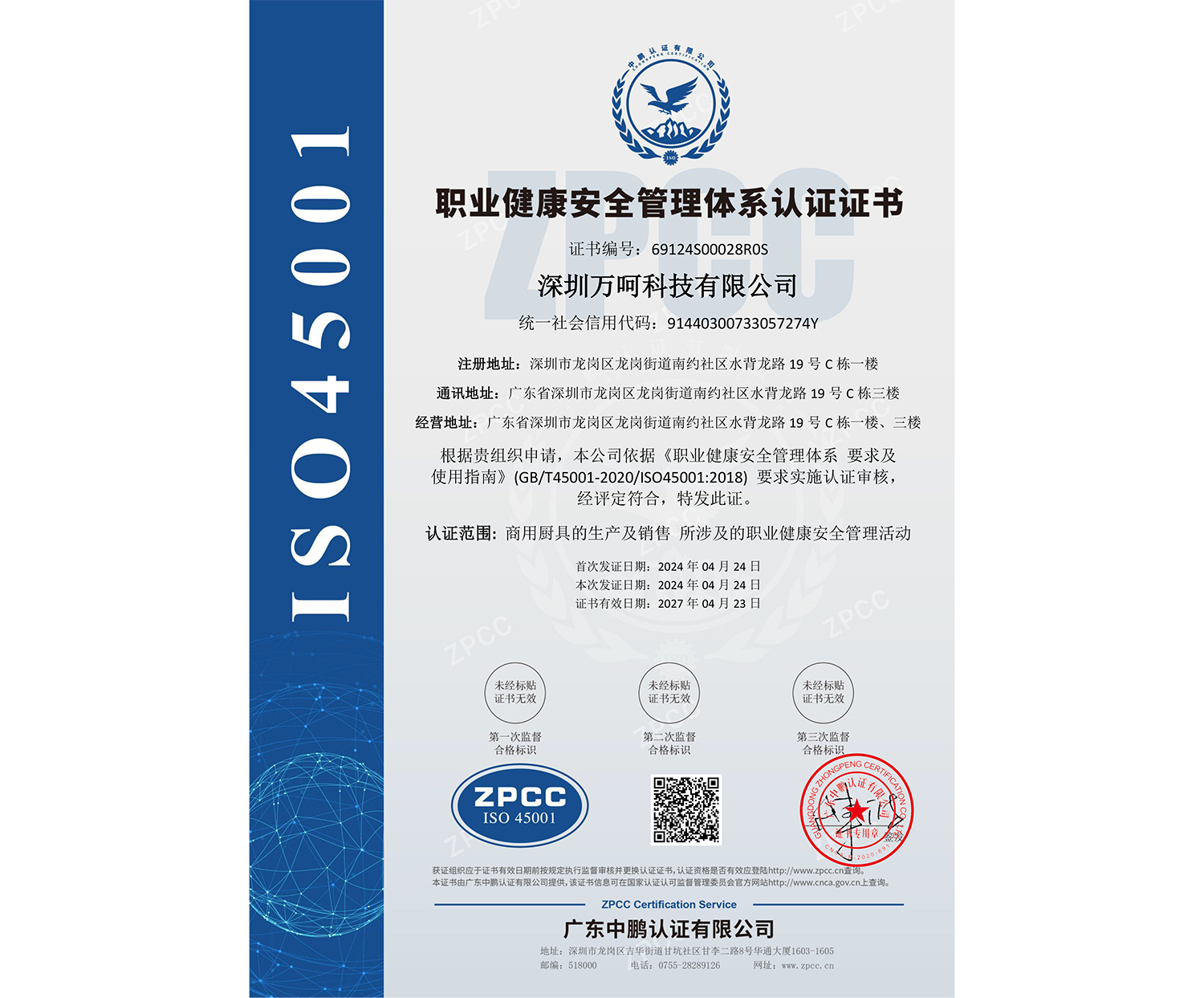 ISO体系认证书