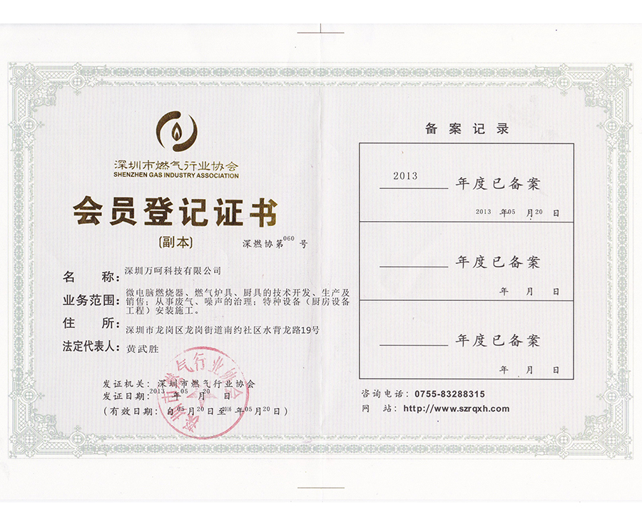 会员登记证书
