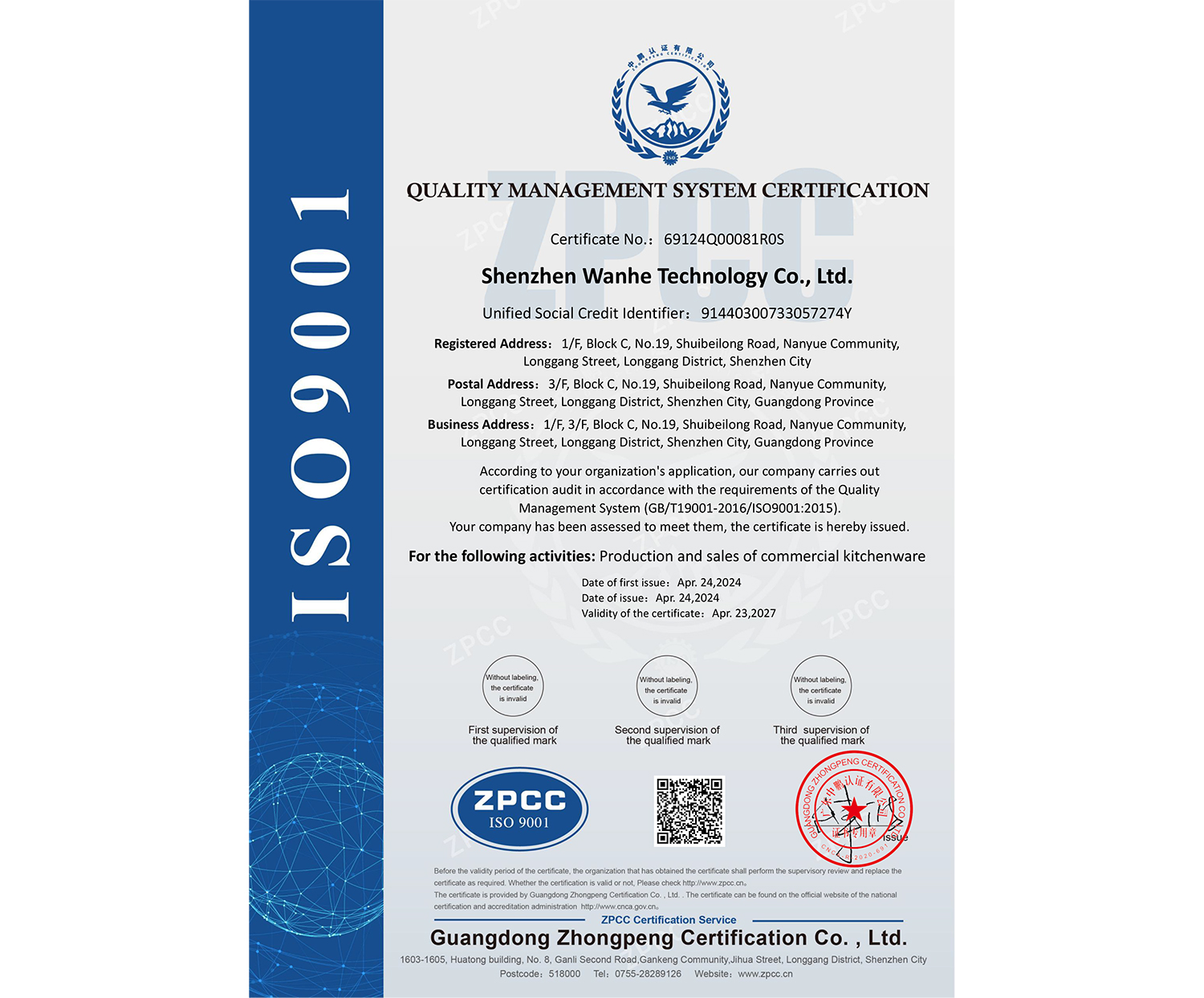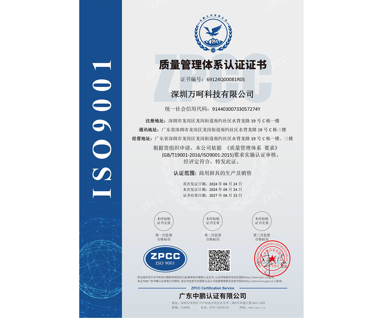 ISO体系认证书